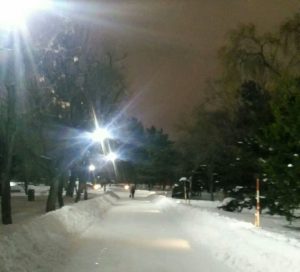 晚上八点的札幌,夜幕已经降临。街上人影稀薄,只有马路上偶尔会有车灯晃过。爬过了一个大上坡,就看到了夜色下的幌平桥和丰平川。札幌的光污染并不太严重,沿着丰平川漫步时候甚至能看到点点星光。作为在沈阳的零下二十度的天气中习惯了的东北人,札幌的零度左右的空气显得并不寒冷,甚至有些清新。在一个路口下了坡就来到了中岛公园。夜幕下的中岛公园只有零星的人在锻炼和散步:
