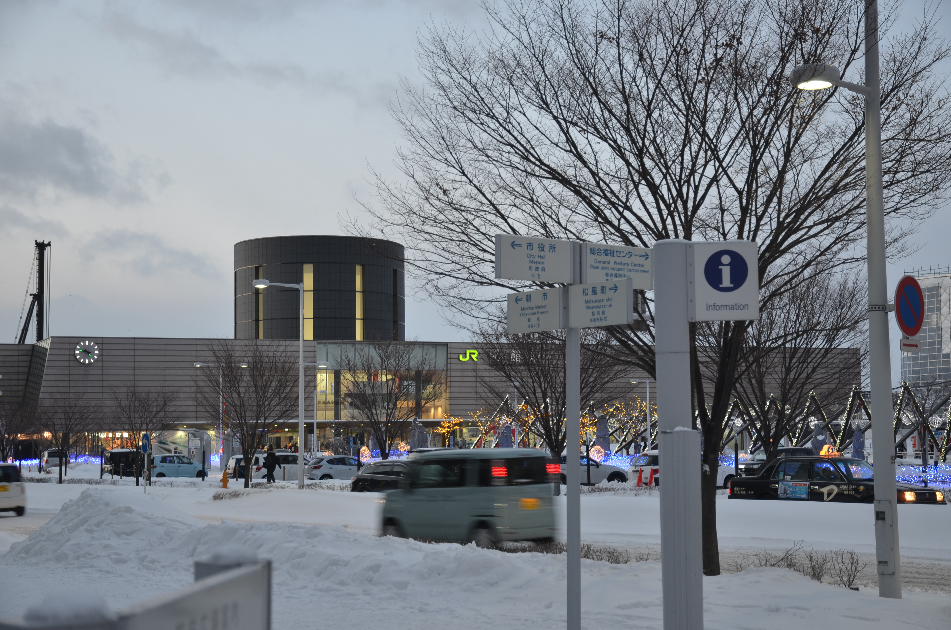 从两个月之前就开始规划行程,但是因为同行的人临时来不了,于是就一个人去了北海道。因为时值旅游旺季,这个时候直飞的机票可以说是天文数字,于是选择了转机的方法,先国际线到大阪关西国际机场,然后坐国内线去新千岁国际机场。国际线这里选择了最廉价的春秋航空,国内线就选了ANA。到新千岁机场以后,立刻换乘JR一路赶往札幌站。从千岁到札幌的一路上,列车飞速穿行在皑皑白雪当中。由于之前没预定指定席,一路上都在站着。大部分时候,窗外掠过的只有无尽的披着白雪的树木。就在接近审美疲劳的时候,列车从山谷中驶过,壮美之景一下子扑入眼中:山谷的下面是连绵的农田,而山谷的另一侧,山上的树木呈现出有致的分层,仿佛隐藏着城堡的童话世界。偶尔有这样的景色,也让枯燥的列车旅行不再那么无聊了起来。