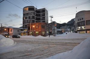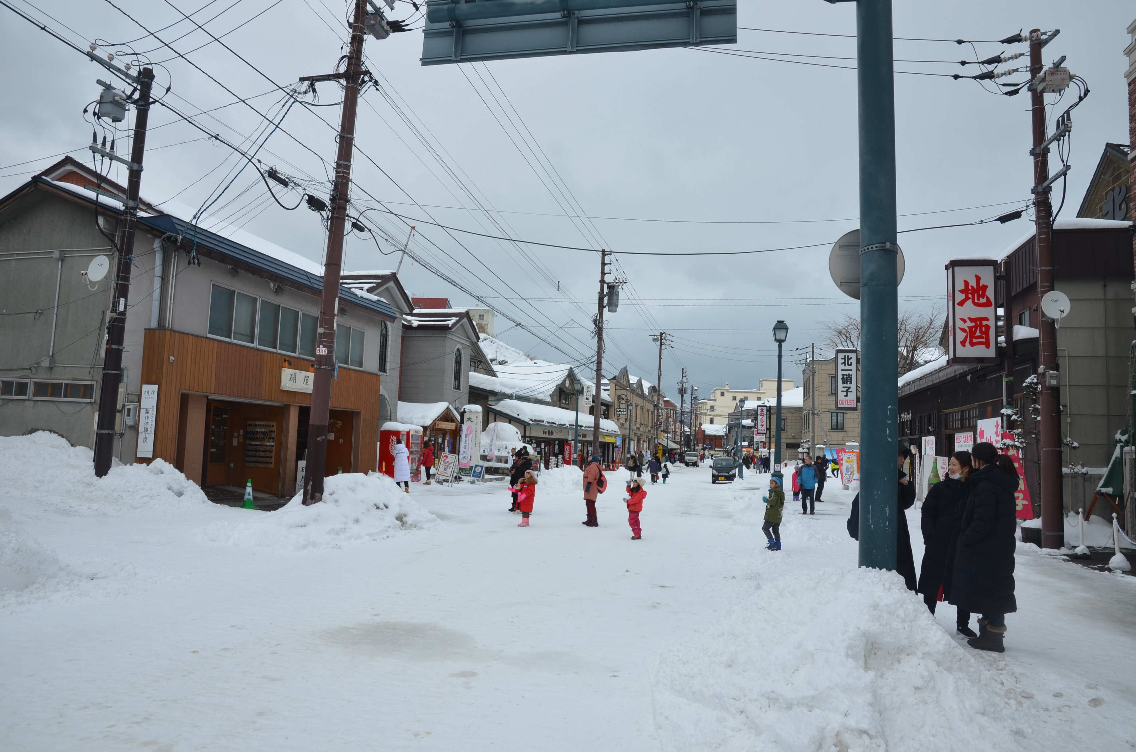 小雪还在不停地飘着,行走在小樽的大街上,呼吸着微凉的海风,抬头仰望,时不时有乌鸦在密密麻麻的电线上落脚休息。很快,就到了小樽的商业街。商业街口的小樽八音盒堂十分有名,里面可以买到各种各样的八音盒。门口还有一个标志性的蒸汽动力钟。