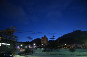 转了一圈差不多三点也到了,就去宾馆先把行李放下,打算晚上去看一下心心念的函馆山夜景。赶着电车到了函馆山下,就感觉有点不妙——山顶好像一点亮光也没有。问了一下工作人员,因为昨天晚上暴雪,函馆山索道暂不开放。难得来一次错过了有点难受。从远处看去,索道上全是密密麻麻的乌鸦,有点渗人…