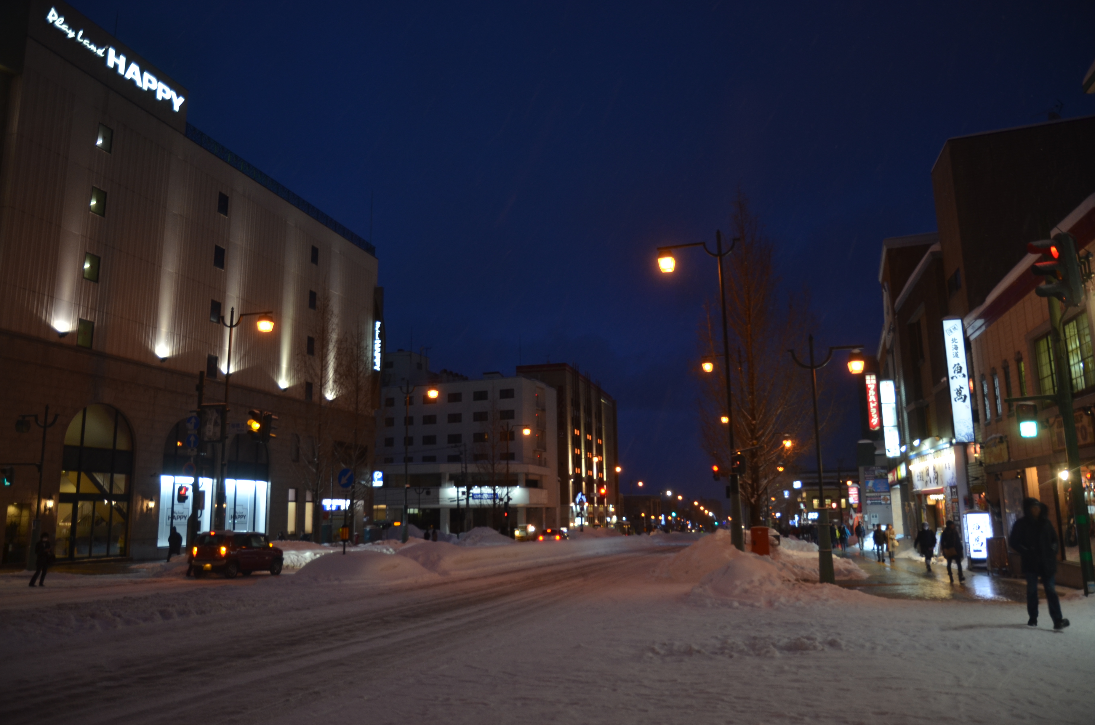 到了以后第一件事,丢下了行李箱,打开了电暖炉。瘫在了沙发上。片刻之后,拉开窗帘,窗外的雪花还没有停下的征兆。如果是在家里,这寒冷的冬夜里,没有比躲在有暖炉的屋子里更舒服的事情了吧。但是时间紧迫,来了不能总躺在床上。一天还没吃饭,于是打开了燃气灶给自己烧了一锅泡面,然后就背上包出门了。但是这么晚了也什么明确的目的地,于是便往狸小路商店街一路走过去。