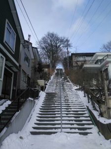 查了一下地图,室兰的另一个景点地球岬在大概5公里外,中间没有公交车。当时脑子一热就直接走了过去。结果室兰是个山城,一路上翻山越岭,在雪中跋涉了两个山口,总算到达了目的地。但是一路上收获也不小: