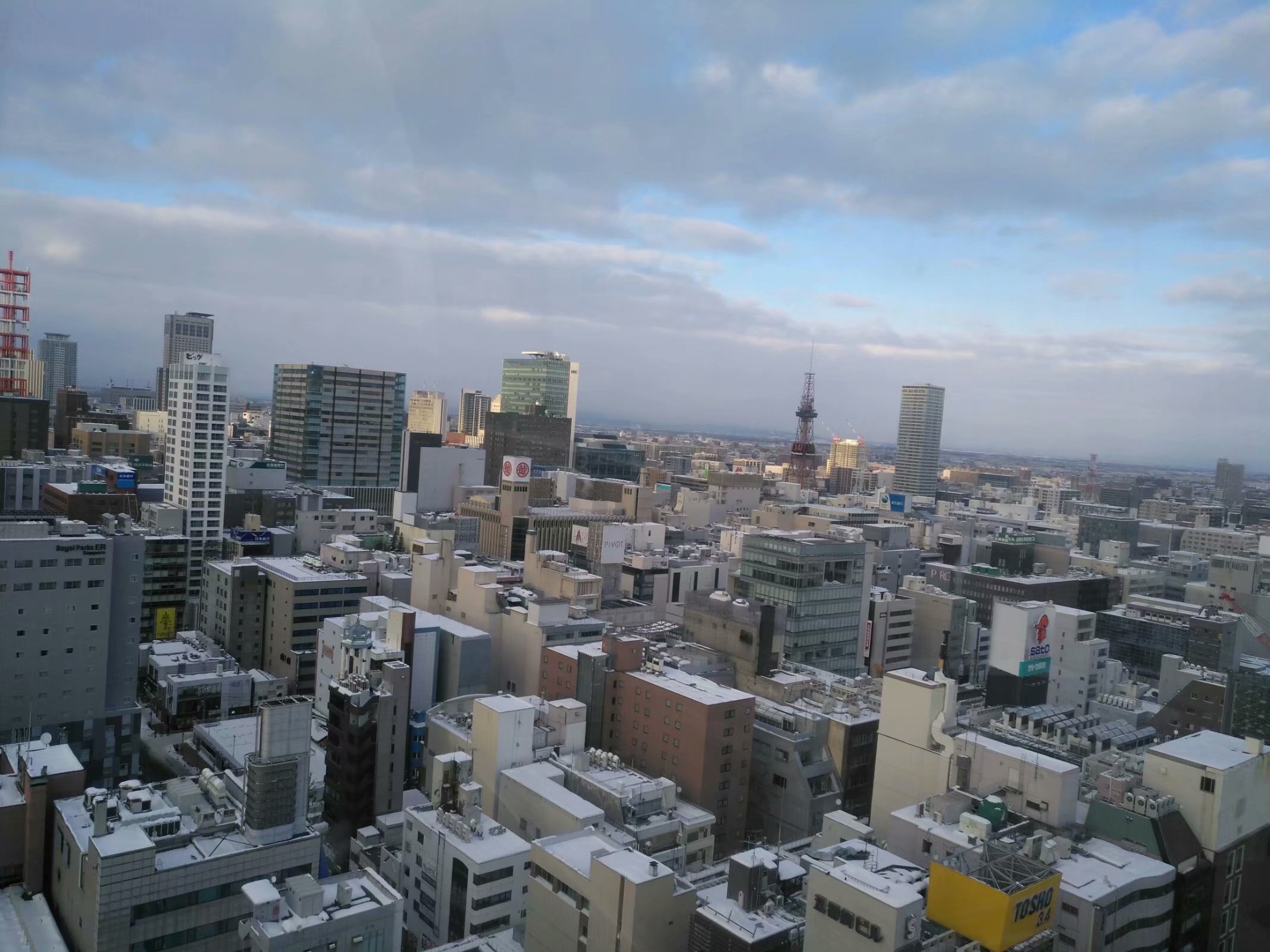 去过了啤酒博物馆,中午回到すすきの商业街,打算坐一下百货商场楼上的摩天轮。在商场楼上发现了一个机厅,进去想摸两把,结果发现有一堆大佬在打,完全不敢上去…看三个人接力考过了达人,最后rush过了剩1可,然后后面所有人都在喊ヤバい。看完了大佬表演,内心得到了升华,感觉此行圆满了。今天是个大晴天,能见度非常好,在摩天轮升到最高点的时候,札幌市区一收眼底。上次坐摩天轮已经是很久以前的事情了啊。