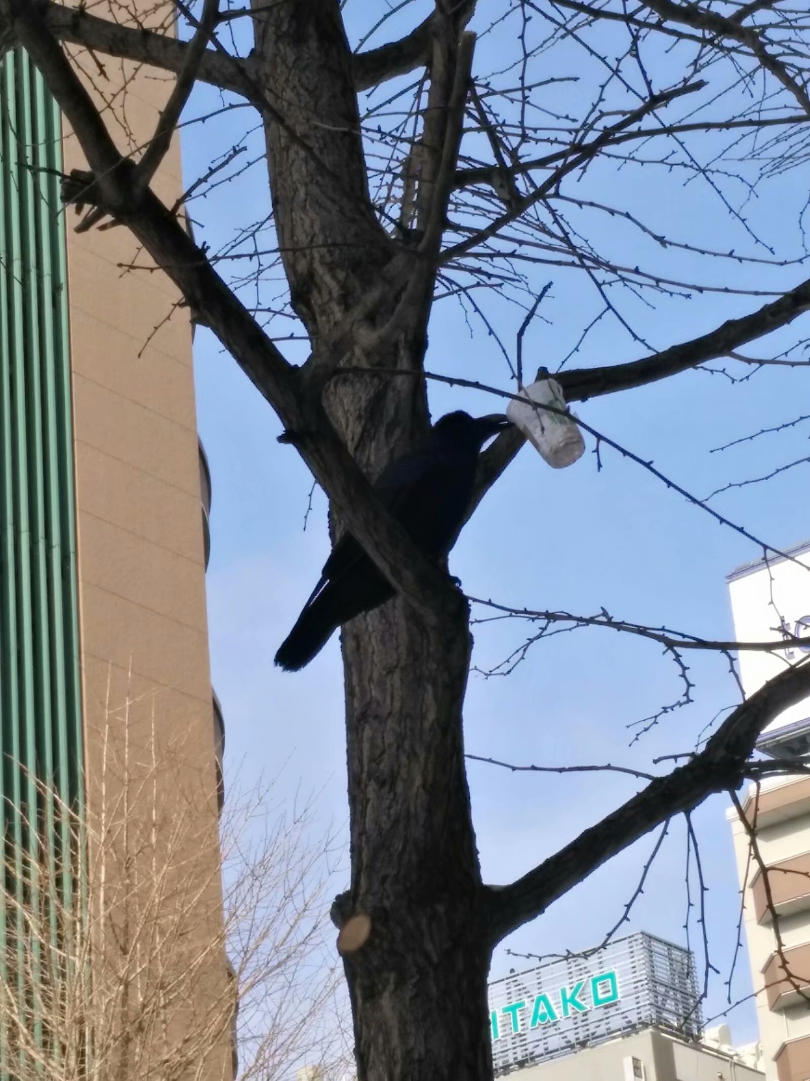 在札幌的最后一天,一大早退掉了房,找了个地方把行李存了起来,想着最后一天再去转转。查了一下,札幌有一个啤酒博物馆,介绍开拓时代的札幌啤酒厂历史,就赶了早过去看看。在すすきの大街上闲逛时候,路边飞过来一直乌鸦,机敏地叼起了一个空星巴克杯子就上树了。然后发现这玩意不能吃,愣了半天然后扔了…