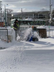 一早上退了房,从洞爷湖温泉镇赶公交到了JR洞爷站。昨晚下了暴雪,从车站的高台上望去,工作人员正在用扬雪机处理街上的积雪。