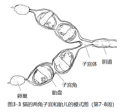 猫的子宫不是像人类那样的一个大的袋子,而是长成两根管状的样子。